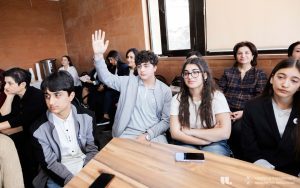 This was followed by a presentation by Naira Yerkanyan, a WorldView teacher trainer, who introduced a project from one of the 2025 winning schools of the Smart Boards for WorldView Schools competition, titled “Alexander Mantashev: The Power and Value of Money.”